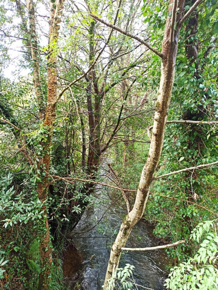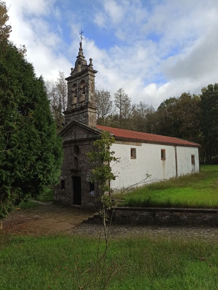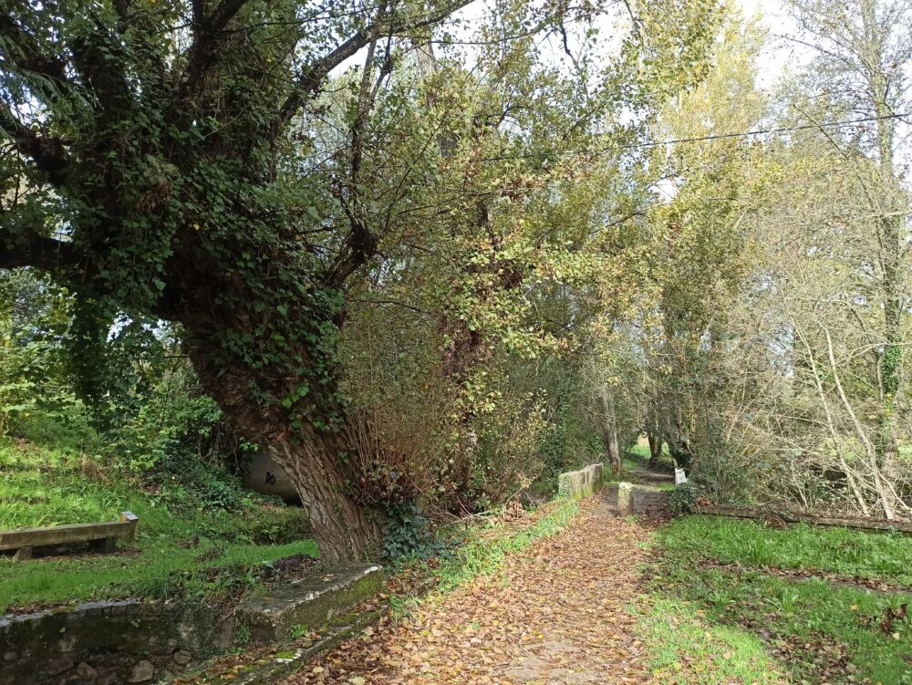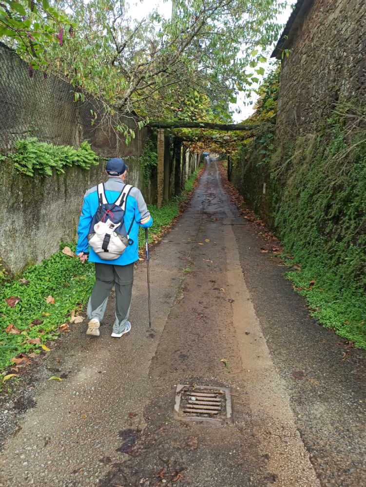 Caminamos entre bosques atlánticos y zonas rurales, con casas diseminadas y huertas que recuerdan que aquí el Camino no es solo tránsito, sino vida cotidiana. Este tramo coincide en parte con antiguas vías de comunicación hacia Compostela, utilizadas durante siglos por peregrinos que, como nosotros, sabían que la meta estaba próxima.