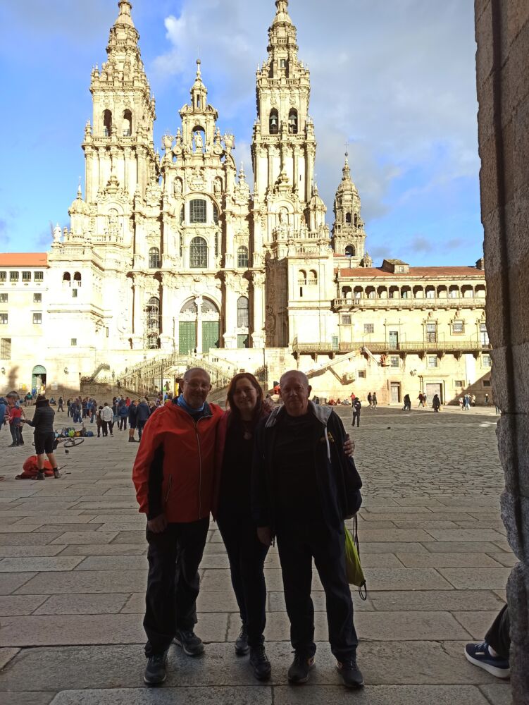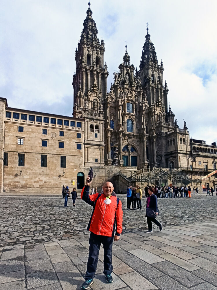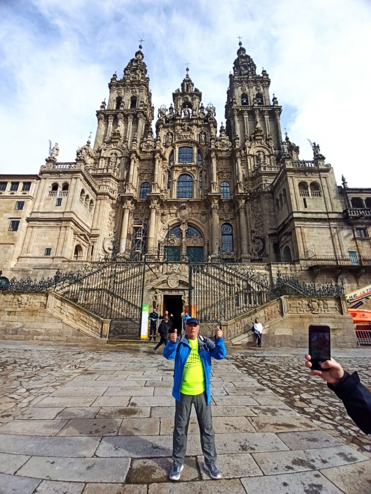 La llegada a Santiago fue inmediata… y pasada por agua. Empezó a llover justo al entrar en la ciudad, como si el cielo hubiera esperado pacientemente su turno. Nada que empañara la emoción: Santiago siempre recibe como quiere, y el peregrino aprende a aceptarlo.