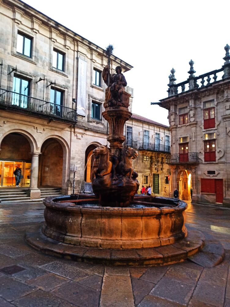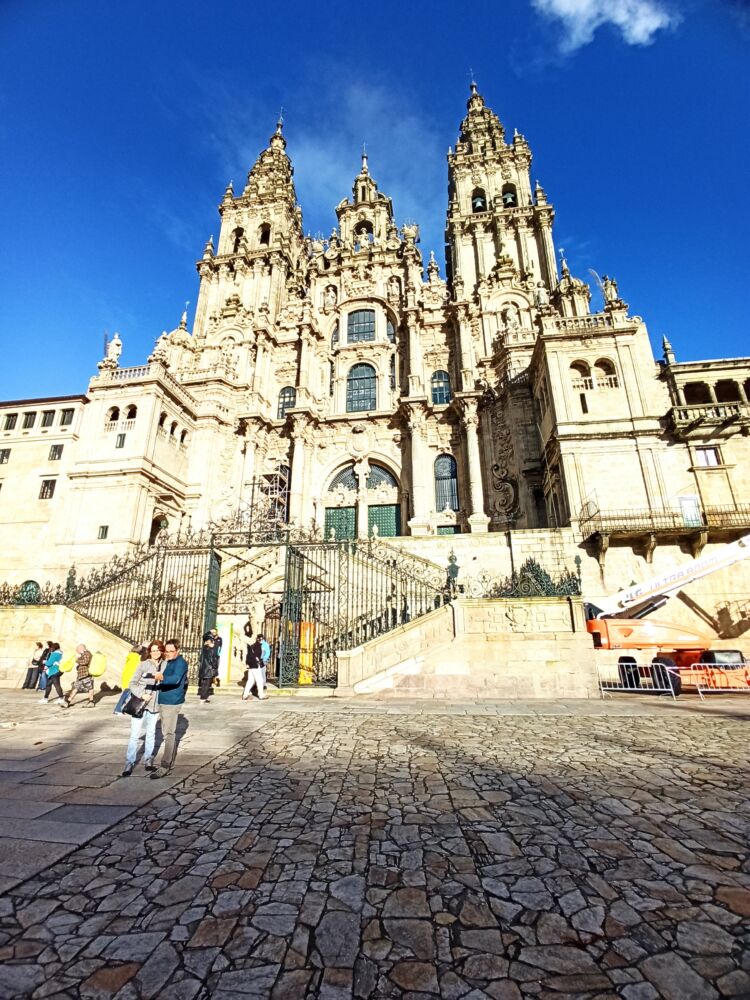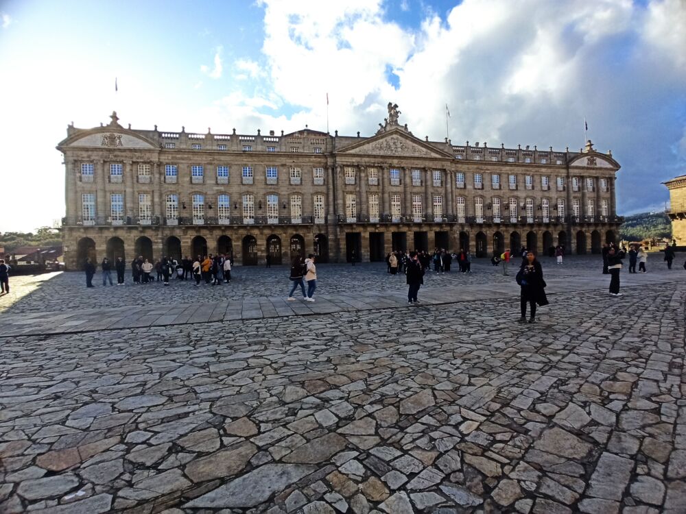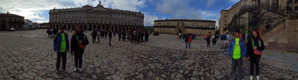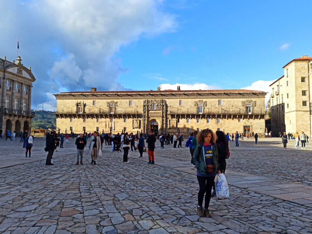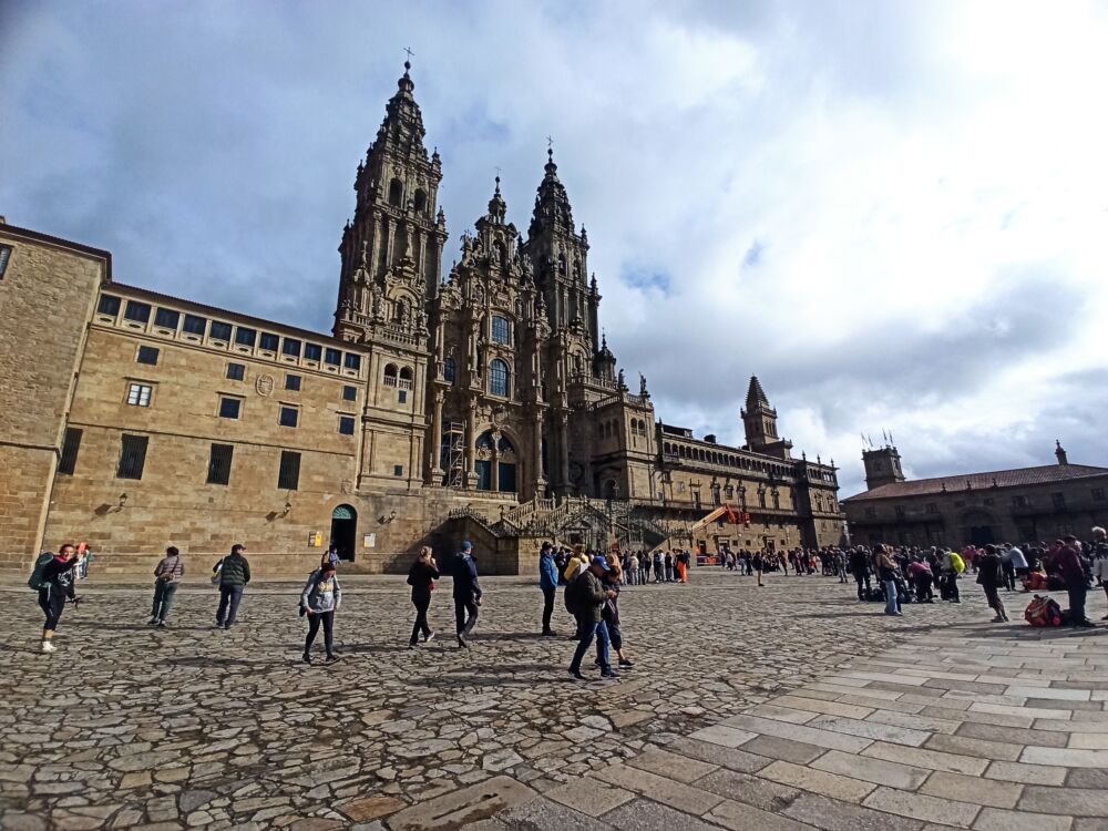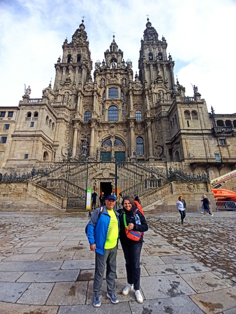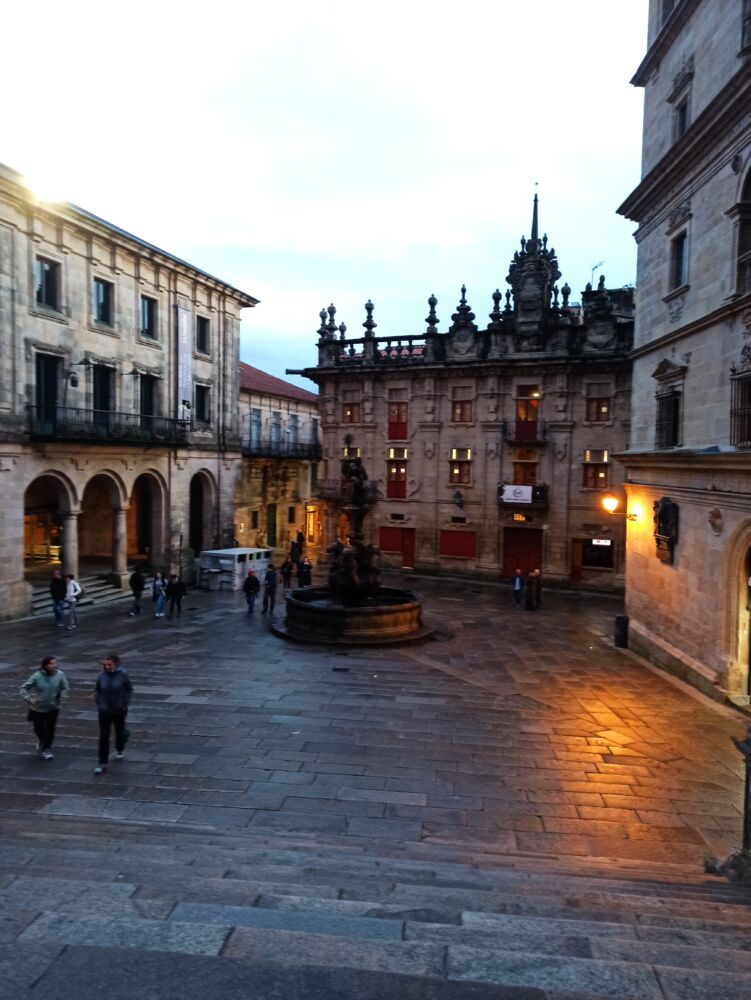 Tras instalarnos en el hotel y disfrutar de una ducha reparadora, regresamos a la Plaza del Obradoiro para las fotos inevitables, aprovechando una tregua de la lluvia. La plaza, como siempre, era un cruce de emociones: llegadas, abrazos, silencios y miradas al fin cumplidas.