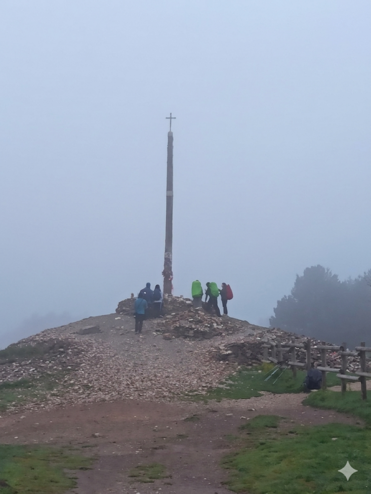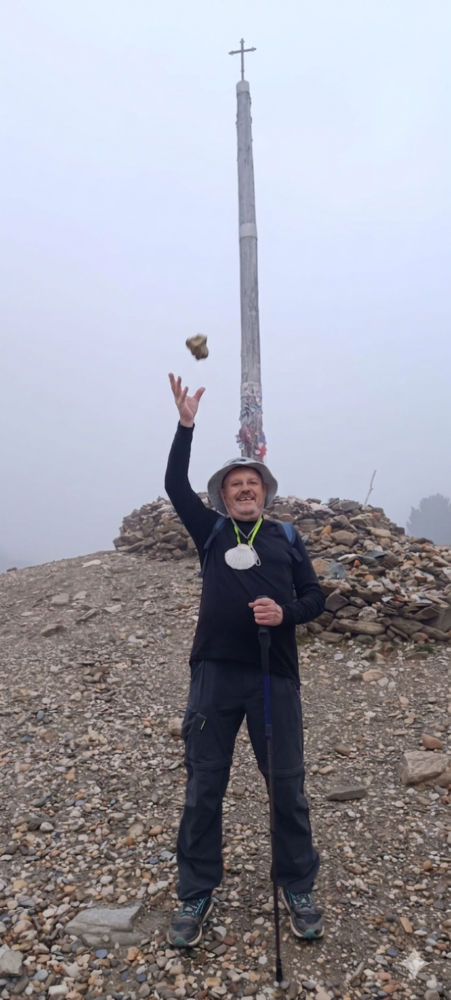 Hemos cumplido con la tradición de tirar una piedra de espaldas a la Cruz. Simboliza dejar atrás lo que pesa: cargas, pecados, preocupaciones o el propio esfuerzo del camino.
