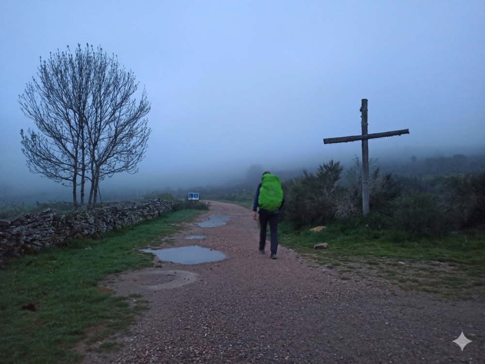 Hemos ascendido hasta la Cruz de Ferro, uno de los lugares más simbólicos del Camino de Santiago. Esta cruz de hierro, colocada sobre un mástil de madera, se alza desde tiempos medievales. Se cree que los peregrinos ya dejaban aquí piedras como ofrenda en época romana, y más tarde los caminantes jacobeos lo convirtieron en un gesto espiritual para soltar cargas y preocupaciones.